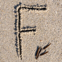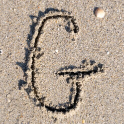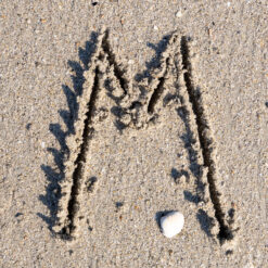 Des lettres dessinées dans le sable (plage du Treustel à l’Île-Tudy) et imprimées sur des magnets souples.