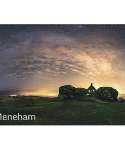 Magnet carré au format 52×52 mm (avec revêtement de surface « soft touch » mat) représentant un drapeau Breton de nuit sur la plage de la Torche en projection de type « Petite planète ».