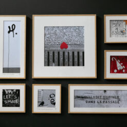 L’encadrement est réalisé dans les règles de l’art par Johane Porhel. Il se compose d’un verre de 2 mm, suivi d’un passe-partout couleur porcelaine, d’un tirage sur papier photo mat, puis d’une cartonnette (qui protège le carton de fond de l’acidité de la photo) et enfin le carton de fond épais, le tout enveloppé d’un entourage craft. Une attache est prévue pour l’accrochage. Les mini-cadres peuvent être associés facilement par 2, 3 ou 4, mais aussi avec les cadres panoramiques 12×27 cm.