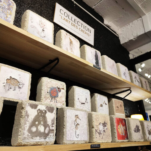 Sabine, Manon et Laurent ont cherché des murs décrépis pour y faire de « L’Art des Crépis » éphémère, une collection réalisée à 3 mains (dessins réalisés avec de la craie qui part à la pluie) !