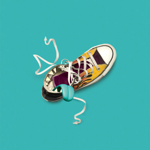 Photo « Basket tongue » de la collection « À double sens » au format 20×20 cm tirée sur papier photo mat.