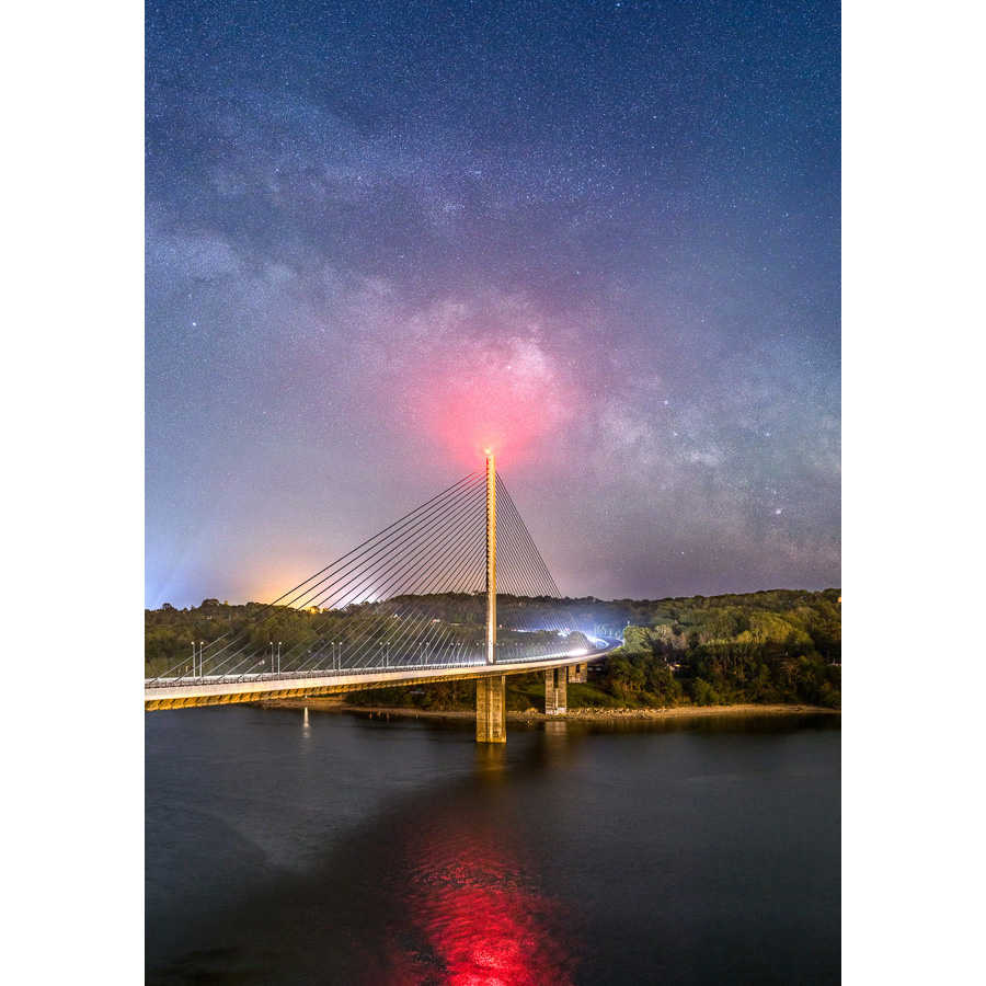 Photo “Brest : Le Pont de l’Iroise sous la Voie lactée” de la collection “Bretagne étoilée” au format A4 (21×29,7 cm) tirée sur papier photo mat.