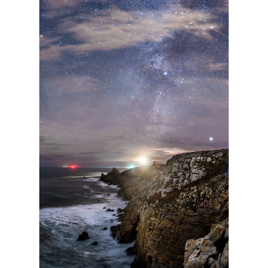 Photo “Camaret-sur-Mer : Voie lactée sur Le Toulinguet » de la collection “Bretagne étoilée” au format A4 (21×29,7 cm) tirée sur papier photo mat.