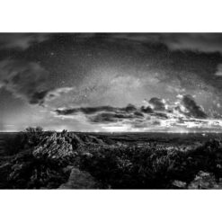 Photo Noir et Blanc “Monts d’Arrée : Le Roc’h Trevezel face à la Voie lactée” de la collection “Bretagne étoilée” au format A4 (21×29,7 cm) tirée sur papier photo mat.