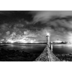 Photo Noir et Blanc “Sibiril : le phare de Moguériec sous les étoiles” de la collection “Bretagne étoilée” au format A4 (21×29,7 cm) tirée sur papier photo mat.