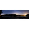 Les puissants éclairages du petit port de Kerdruc (situé au long de la rivière Aven qui travers Pont-Aven en amont) filtrent à travers les troncs d’un bois et tracent des raies de lumière au niveau de la constellation du Scorpion. A sa gauche, le Sagittaire qui se lève à peine.