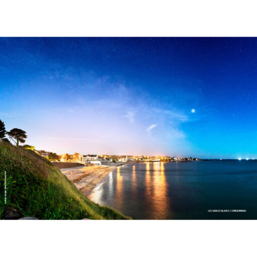 Set de table réversible « Concarneau de nuit ». Deux photos du même site sont imprimées, l’une au recto, l’autre au verso. Ces photos ont été prises de nuit ou au crépuscule afin de capturer les étoiles, la Lune, la Voie lactée, etc.