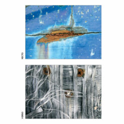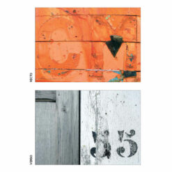 Les photos sont celles de Sabine Sannier («Tête de pioche»). Ce sont des images de matières abîmées prises de très près (métal, bois, béton, plastique, etc.) que l’on peut voir n’importe où autour de nous, dans une ruelle, sur un port… Elle fait du beau avec du moche ! En somme, c’est du recyclage visuel.