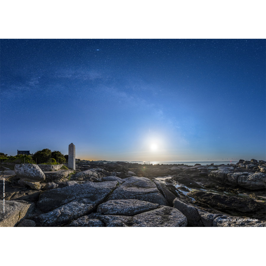 Set de table réversible « Trégunc de nuit ». Deux photos du même site sont imprimées, l’une au recto, l’autre au verso. Ces photos ont été prises de nuit ou au crépuscule afin de capturer les étoiles, la Lune, la Voie lactée, etc.